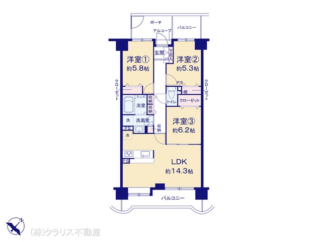| バルコニー面積 | 14.12m² 南東向き | ||